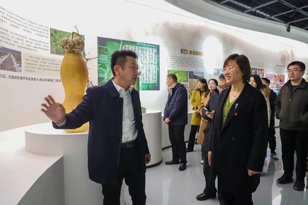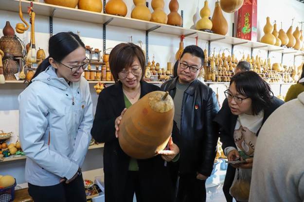 随后,商学院党总支一行观摩了堂邑镇中华范制葫芦基地。中华范制葫芦不仅是中国传统工艺品的重要组成部分,还通过与现代科技的结合成为乡村振兴的又一亮点。在观摩过程中,孙文红副校长与段先锋书记就葫芦文化研究与宣传、新媒体直播电商等方面的合作进行了深入交流。双方表示,后期将深入推进党建引领乡村产业振兴,为堂邑镇乡村振兴发展提供智力支撑和人才保障,共同谱写新时代乡村振兴新篇章。