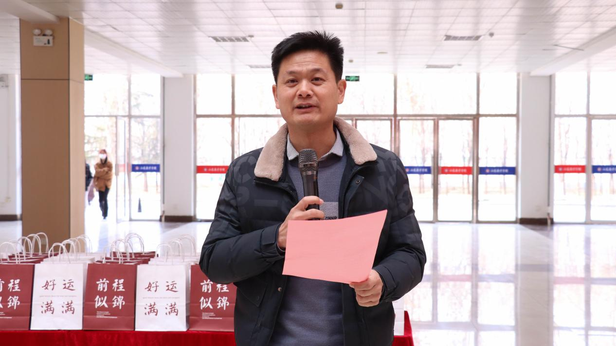 随后,商学院(国际学院)党总支副书记徐宜慧出席活动并发表讲话。他高度赞赏考研同学的坚持与努力,鼓励他们保持良好心态,凭借扎实的知识储备和坚定的信念迎接考研挑战,为未来打开一扇通往更高学术殿堂的大门。同时,他对即将参加期末考试的同学提出殷切期望,希望他们认真对待考试,查漏补缺,提升能力。最后,徐书记鼓励全体同学发扬拼搏精神,面对困难不退缩,勇于担当,展现出新时代青年学子的良好风貌,为学院争光添彩。