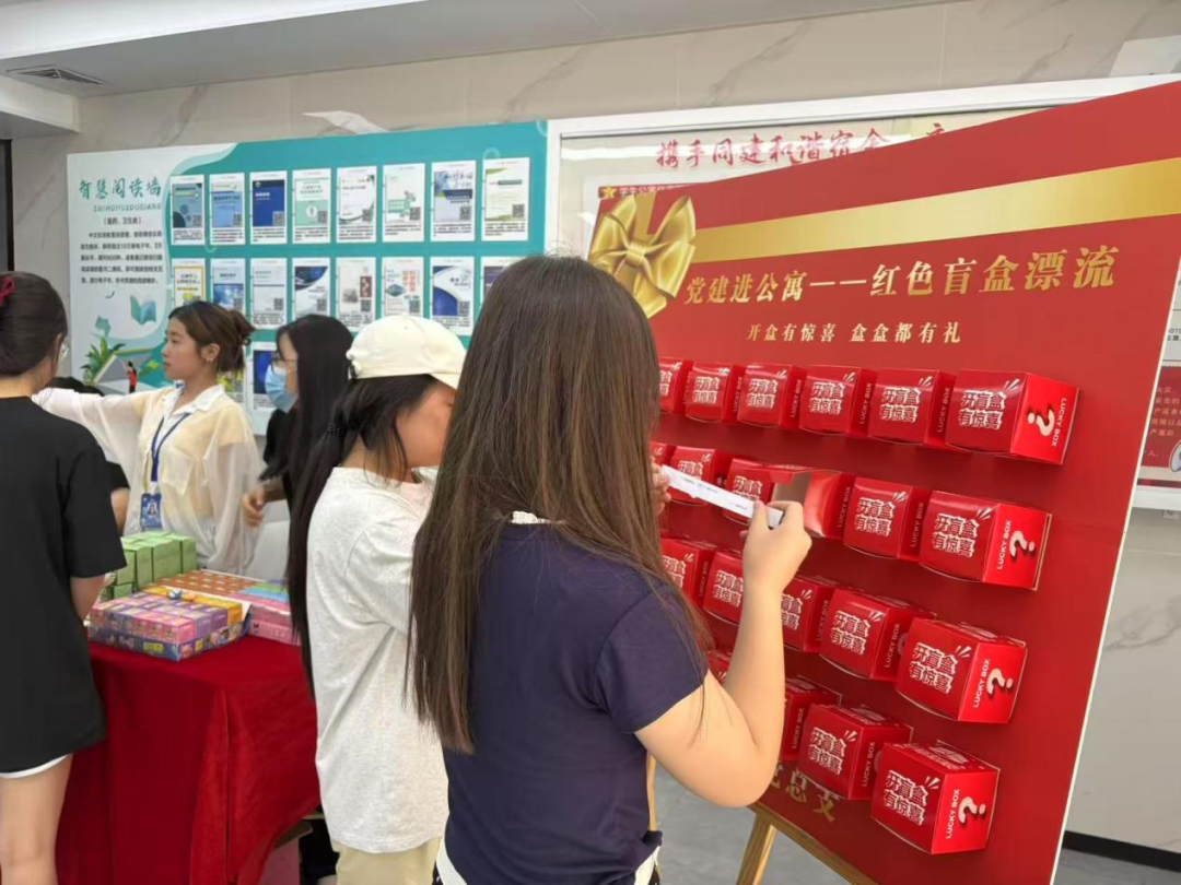 此次“红色解忧站”系列活动,把党建引领融入校园生活服务与学习成长场景,既解决实际困扰,又创新理论学习形式,以有温度、有活力的举措,助力同学们汲取红色力量,在青春赛道上从容前行,也为校园党建育人工作探索了新路径,让红色关怀真正落地、扎根、传扬。红色盲盒漂流活动公寓大厅的红色号角吹响,“红色盲盒角”活动正式登场。