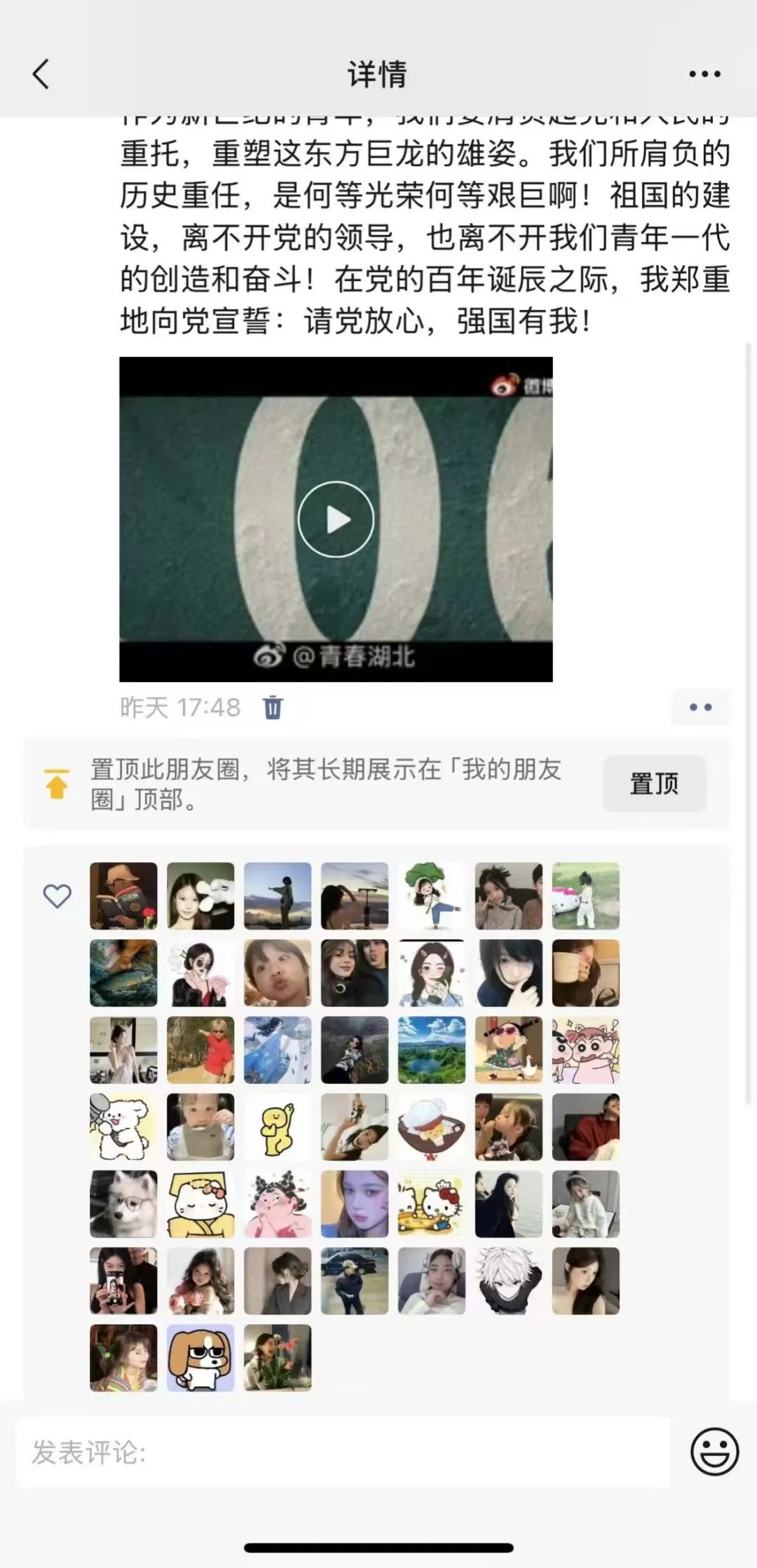 红色电影台词卡传递着热血的涌动。这是对红色精神的热切追寻,让我们沉浸在红色的海洋里,汲取着信仰的无穷力量。在这知识与情感的交融中遨游,展现着青春的担当与热忱。用抽到的党史金句制作电子海报,让红色的力量在指尖传递,闪耀。在社交平台分享学习心得,以创新形式带动更多同学参与。让红色盲盒的光芒一直闪耀!党建运动趣味挑战赛拿起运动的“画笔”,蘸满活力的色彩,在16号楼后广场绘出党史的壮丽风采。每一站打卡都是岁月的回响,每一项挑战都是精神的传承。以运动绘党史,让记忆不再遥远,那些故事鲜活地跃然眼前。党史知识问答,智慧的火花闪耀,红色歌曲接唱,歌声中传递信念。“重走长征路”,跳绳、俯卧撑挑战,在障碍赛中感受先辈的艰难。团队携手奋进,积分见证成长,纪念品是荣耀,更是前行的力量。让我们用运动尽情挥洒,在健康与红色的交融中,铭记历史,展望未来,书写属于我们的青春华章。