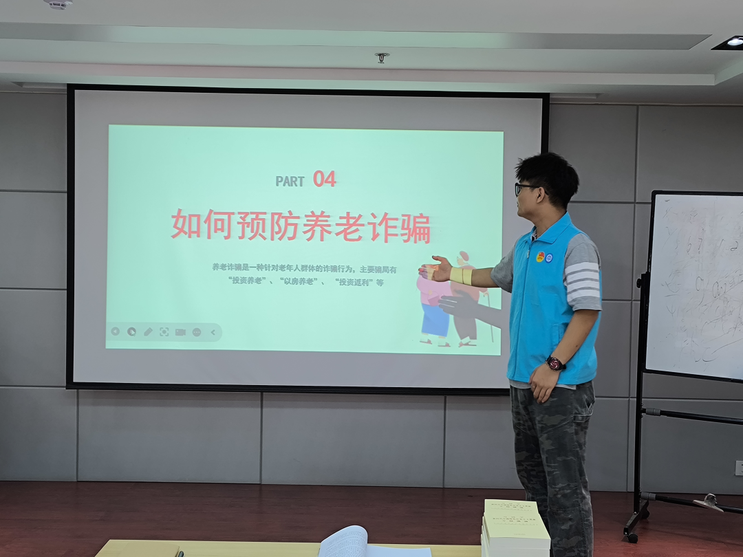 活动伊始,智慧服务实践团成员针对老年群体的特点,结合现实生活中的真实案例为老年人讲解生活中常见的诈骗案例,指导老人如何防范网络诈骗、保健品销售骗局等。提醒老人们时刻保持清醒头脑,遇事多与子女商量,碰到紧急情况要及时报警。