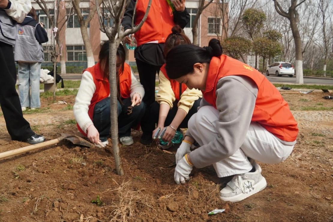 执行校长王晓娜在致辞中指出,“全民植树增绿,共建美丽中国”是习近平总书记的明确要求。高校作为知识传播与文化传承和创新发展的重要平台,更应在生态文明建设和绿色可持续发展工作中发挥积极的带头作用。为此,她向全校师生提出了三点倡议:一是争做绿色发展的践行者,各级团组织要充分发挥带头作用,将志愿服务工作开展常态化,在重要节点期间集中开展环保主题活动,为环保贡献力量;二是争做美丽校园的建设者,树立“我爱我家”的主人翁意识,师生齐心协力,共创美丽校园;三是争做绿色发展的传播者,鼓励同学们发挥新时代青年的优势,积极传播环保理念,使更多人参与到绿色建设中来。