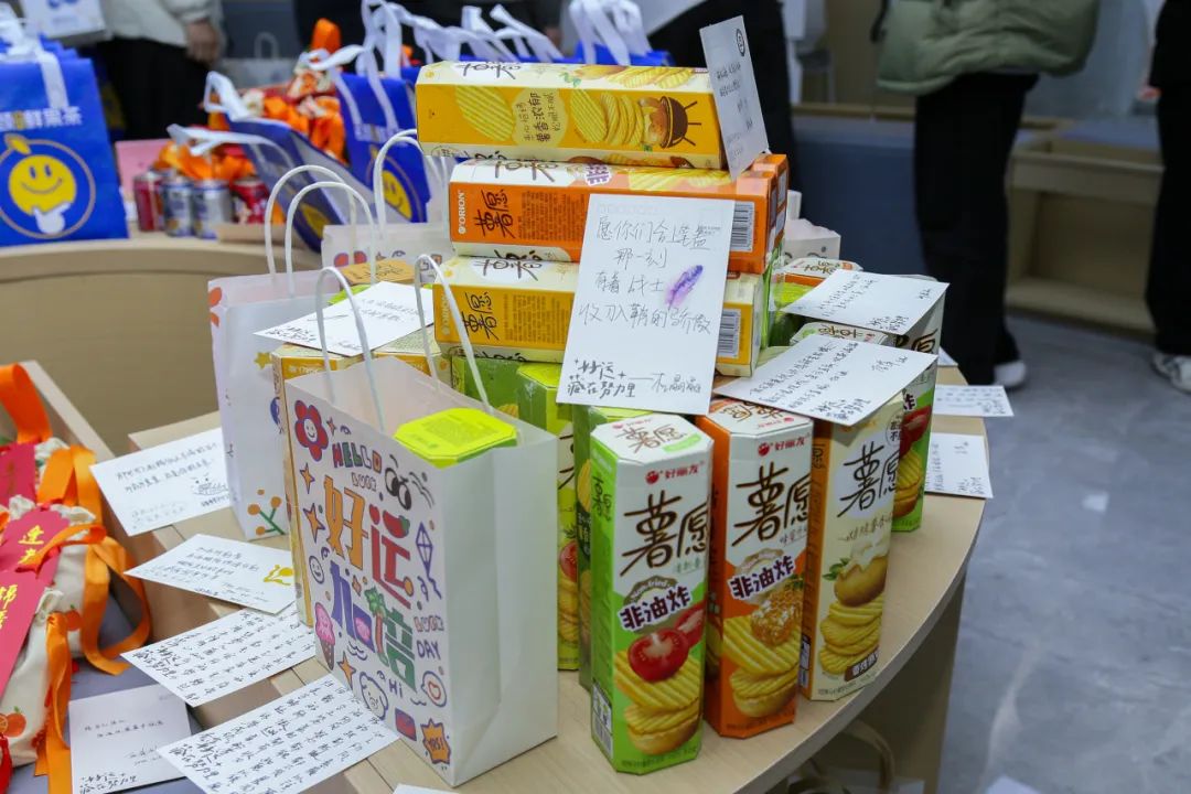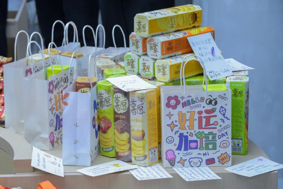 此次活动的核心在于通过一份份寓意深刻的小礼物,将温暖与祝福传递到每一位考研学子的心中,每一件都承载着寓意和祝福。此外,工学院的院领导和辅导员们还亲手写下了激励学子的明信片,为每位考研学子送去了真挚的鼓励与支持。