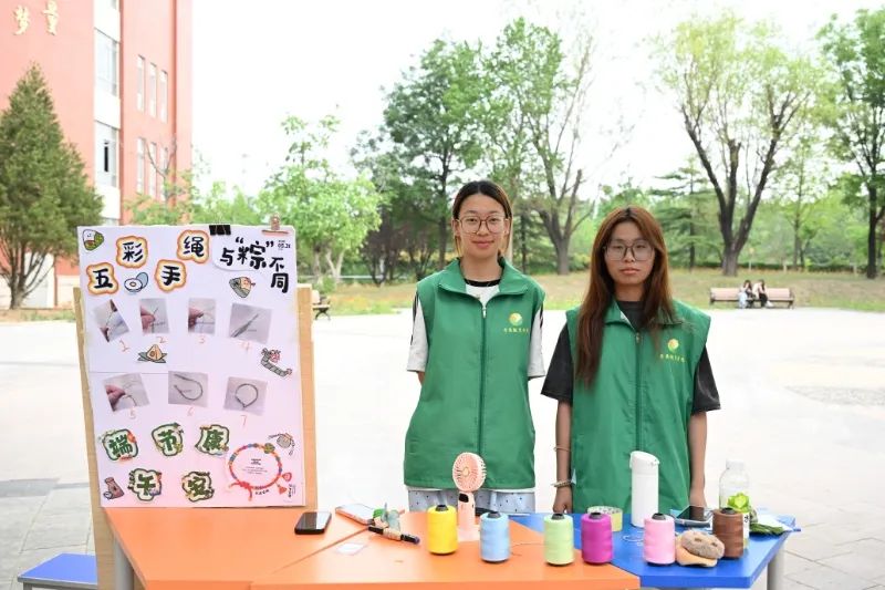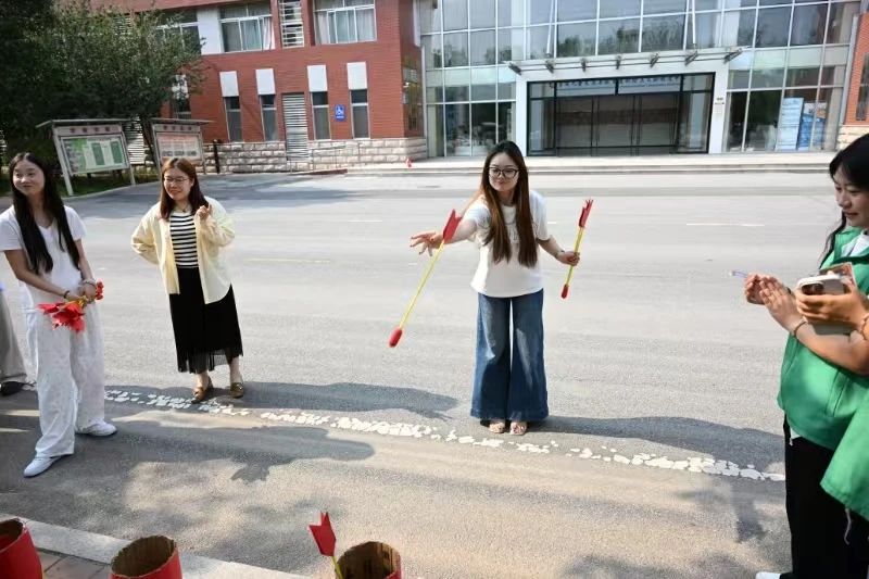 古韵与现代趣味在体验区奇妙相融,竞技与手作碰撞出独特的端午火花。趣味射五毒区域,同学和老师们拉弓瞄准 “五毒” 靶盘,欢笑声与箭矢破空声交织;投壶夹豆摊位前,传统游戏焕发新生机。五彩丝线翻飞间,安康祈愿悄然编织;中药香包里,艾草与薄荷的芬芳承载端午祝福。多重民俗体验轮番上阵,让端午记忆从书本化作鲜活的文化体验。
