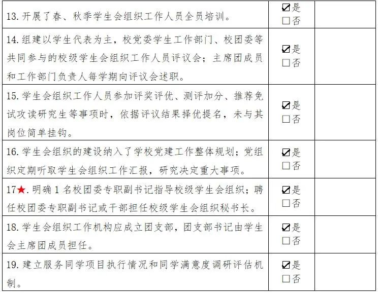 (二)二级学生会组织(含二级院系学生会)改革自评表
