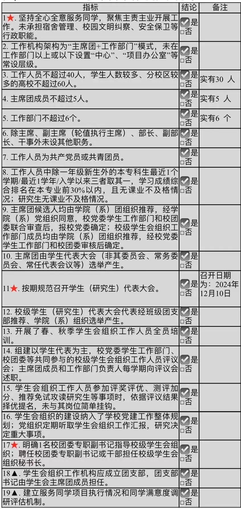 二级学生会组织(含二级院系、书院、分校区等学生会)改革自评表