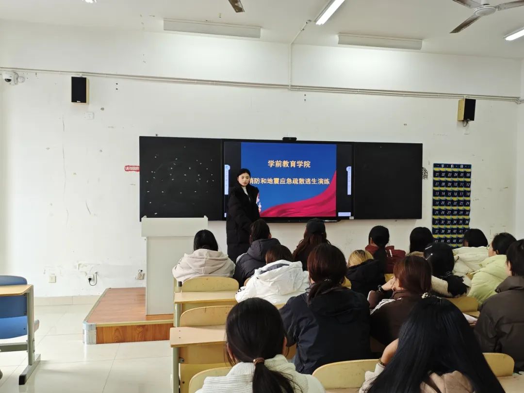 安全工作重于泰山,为了进一步强化全体师生对突发事故的应对能力,学习在火灾、地震中自救、自护的知识。学前教育学院开展了校园消防和地震应急疏散逃生演练活动。