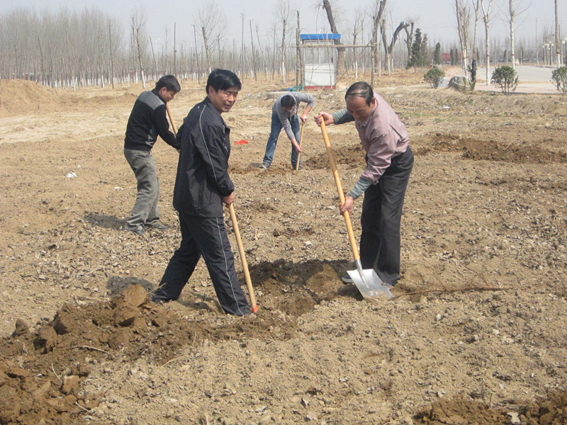 活动中,志愿者们在烈日中认真聆听园林学院董院长的教导和挖坑方法,并且亲自挖坑做示范。张宗胜副院长更是事必躬亲,亲自弯腰拿着铁锹挖起坑来,并且亲切的说:“志愿者们个个都是活雷锋。”志愿者们更是干劲十足,在园林学院老师的指导下,志愿者们干的像模像样,一个个的坑展现在大家的眼前。太阳依旧照的很毒,但志愿者们不怕苦不怕累,认真的埋头干着,为日后树苗的栽种做了充分的准备。在本次活动中志愿者们深深体会到了团结协作的重要性,也为共同打造绿色和谐校园贡献自己的一份力量。