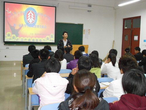 在看过经济管理学院学生会纪检部的一段工作视频后,学生会副主席吕孝围发表讲话。交流会上,各班班长及学生代表就“为什么自我管理”、“如何自我管理”以及在管理过程中遇到的困难等话题展开讨论。会场气氛活跃,各班班长及学生代表各抒己见,对纪检部的工作表示了认可,同时也对学生会纪检部提出了“礼貌为先,有利于据,执行有力”的建议,纪检部部长认真仔细地听取同学们的意见和建议,并针对同学们的提问做了详细的解答。最后,学生会副主席陈忠源做总结发言。