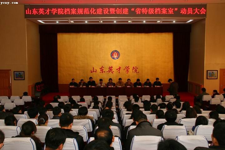 学院孙书记主持会议,杨文董事长致辞,吴海亭处长、我院刘翠兰副院长、张尚营局长分别在动员大会上讲话。我院副院长梁庆文、刘存刚、吴启军以及院长助理张宗胜等院领导也出席了会议。会上,我院还邀请了高校档案管理专家做了关于档案规范化建设的专题培训讲座。