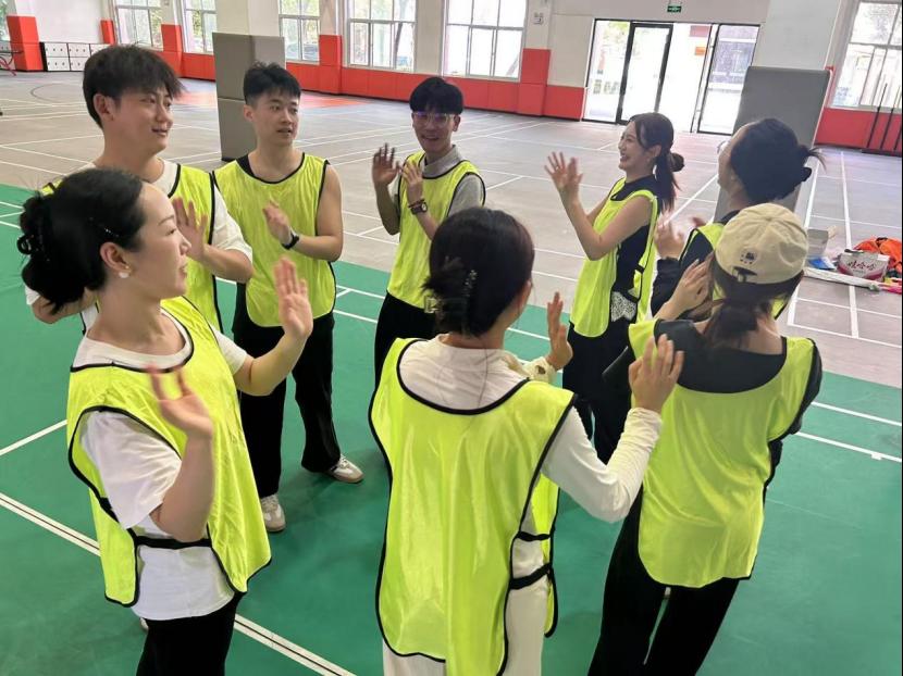 本次素质拓展分为“校内素拓团建”与“校园定向越野”两大板块,涵盖十大特色项目,将趣味性与团队协作深度融合。“旌旗飞扬”“乘风启航”“鼓舞信心”等项目中,老师们相互配合、彼此鼓劲,在肢体协作中快速拉近距离;“头脑风暴”“快问快答”“驿站传书”则以智力比拼激发思维活力,考验团队沟通效率;“穿越A4”“六人四脚”“定点投篮”等项目充满竞技乐趣,大家在欢笑与挑战中释放压力,展现出蓬勃朝气;最后,全体成员在“国旗下宣言”环节庄严宣誓,凝聚起投身教育事业的坚定信念。