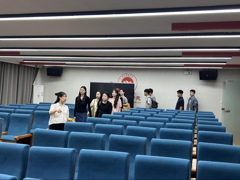活动中,李仙主任带领新聘教师先后走进艺体楼、办公楼、知行楼、弘毅楼实训室。每到一处,李主任都结合各实训室的功能定位,详细介绍了室内专业设备的配置情况、操作规范及教学应用场景——从艺体楼内满足不同专业实训需求的特色场地,到办公楼内用于教学研讨与实训指导的辅助空间,再到知行楼、弘毅楼中舞蹈编排的专业场地,均进行了全面讲解。