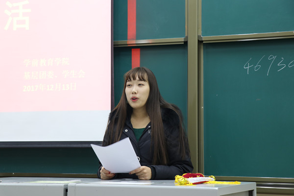 12月17日中午,学前教育学院于学前楼6004召开“文明校园,绿色生活”副书记恳谈会。基层团委学生会骨干参与了本次会议,学生会副主席张宇担任本次会议主讲人。