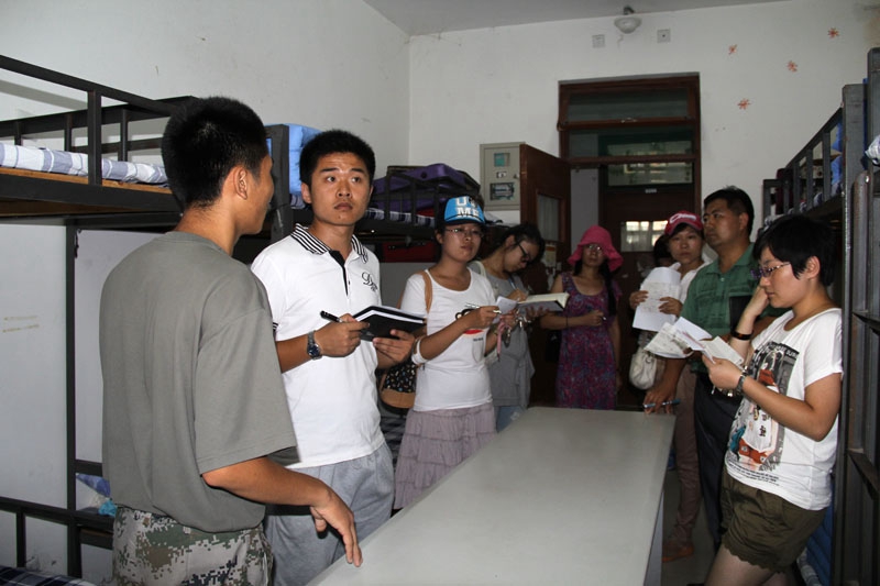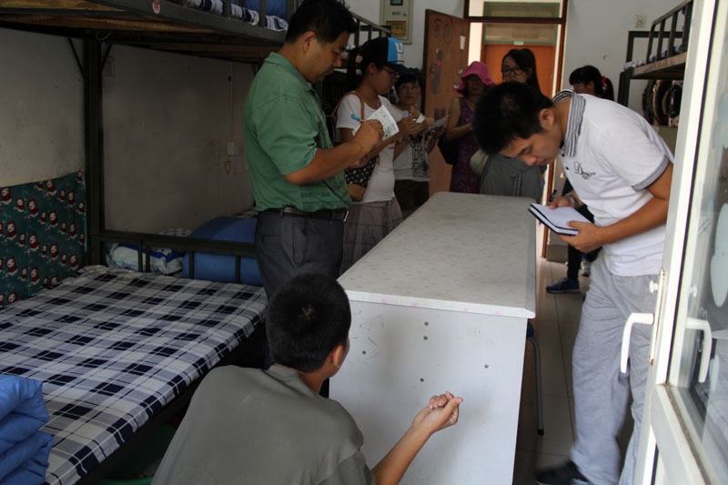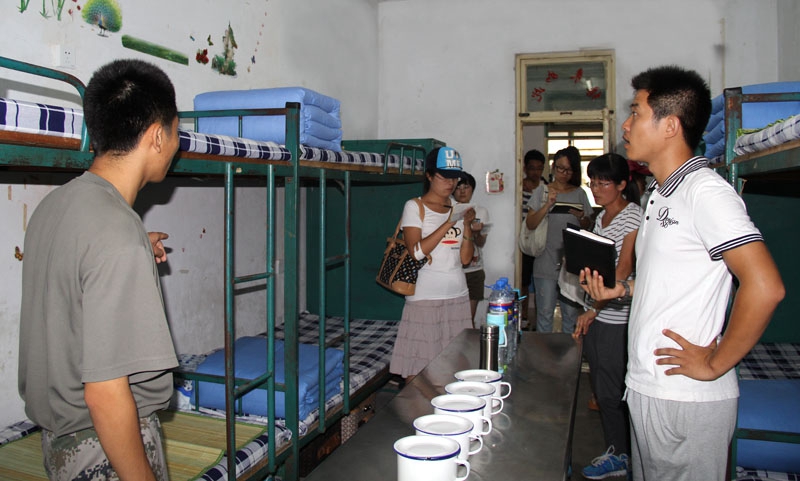 2013年8月19日,新葡的京集团8814学生处在南校区组织各二级学院部分参训辅导员组成检查组,对2013级新生军训内务进行检查,并要求参训教官协助此次工作。