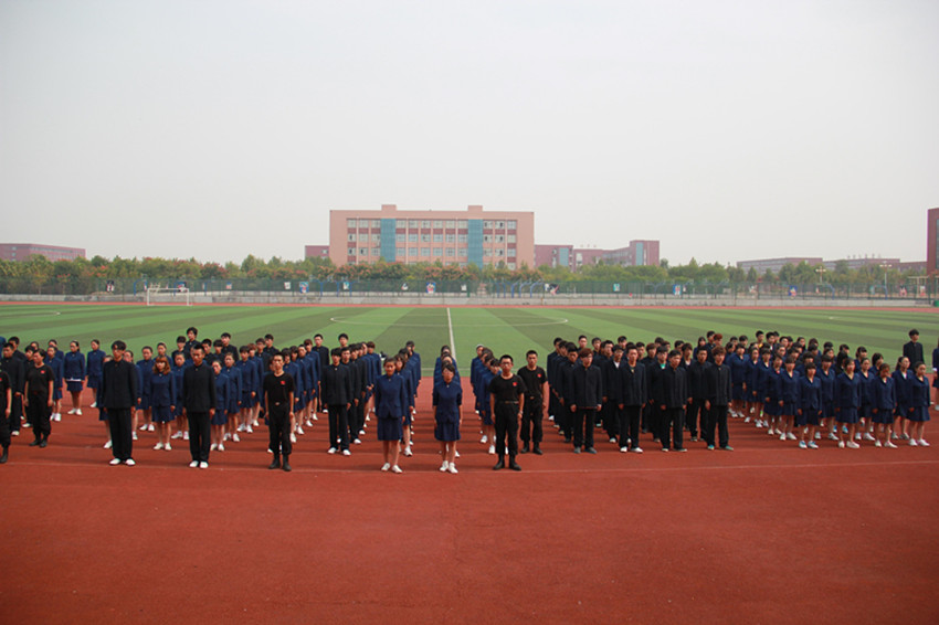 中午12:30分,阅兵式正式开始。分列式表演中,北校区全体补训新生,以整齐的队列、嘹亮的口号、矫健的步伐和昂扬的气势,精神抖擞地向领导们汇报了14天的补训成果。阅兵式和分列式结束后,新生方队分别进行了手语操感恩的心、舞蹈阿拉伯之夜、兔子舞表演,使全场眼前一亮、掌声雷鸣。他们整齐划一的动作,响亮的口号,昂扬的姿态,威武的军风,赢得了主席台领导及全体学生的热烈掌声。