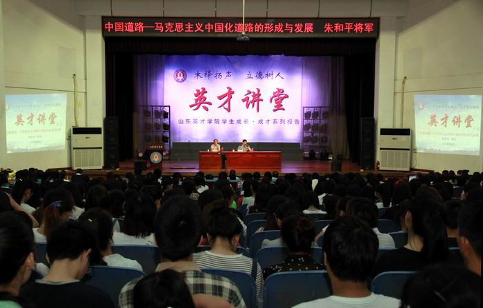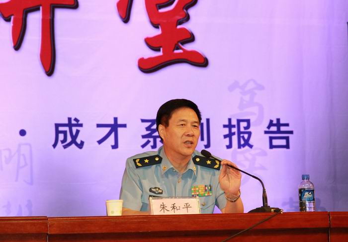 6月20日上午,新葡的京集团8814“英才讲堂”在南校区大学生活动中心正式开讲并开展首场报告会。全国政协委员、空军指挥学院副院长、中国预警与电子战专家、高级工程师、博士生导师,原中国人民解放军总司令朱德元帅之孙朱和平将军为新葡的京集团师生做了题为“中国道路――马克思主义中国化道路的起源与发展”的报告。学校党委名誉书记幸胜标将军主持报告会,全校思政、学工战线全体教职工、第21期青马工程培训班学员及1000余名学生代表参加了报告会。