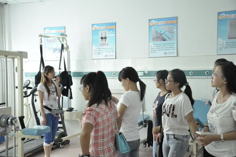 医学院实验教学中心教师为新生展示先进的康复治疗仪器
