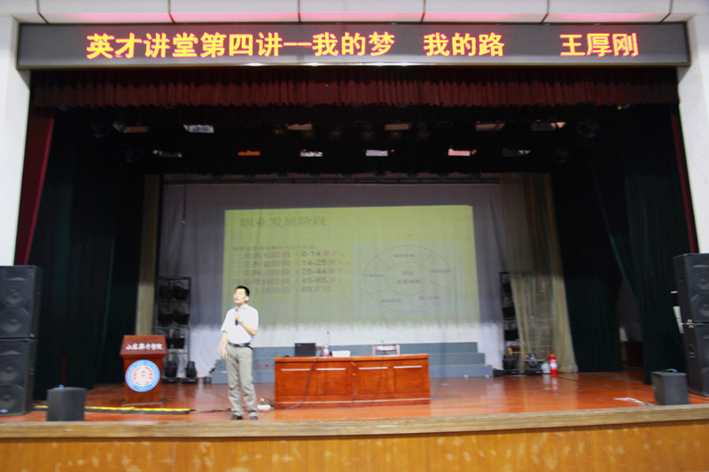 就业指导与校企合作处王厚刚副处长作为经验丰富的国家职业指导师、创业咨询师为新生做了职业生涯发展与规划教育的报告,用幽默的语言、鲜活的案例向我们编制了一幅人生职业生涯规划的蓝图,内容丰富,案例详实,分阶段性地介绍了对如何规划大学生活,如何根据个人兴趣与个性特征平衡专业学习与社会实践的关系,对新生有效规划职业生涯与专业发展有很强的指导意义。报告会后王处长力赞英才讲堂之2014级新生入学教育系列报告的方案与实施效果“报告主题涉及内容全面,设计紧凑,会场安排有序合理”,王处长还谈到了职业生涯规划教育对大学新生的重要价值“大一新生面对人生的转折点,需要适应新环境,逐渐脱离开父母的怀抱,人格开始独立,这个最能吃苦的年纪千万不能选择安逸,勉励新生要专心学习,勤于实践,注重锻炼,树立远大理想”。商学院市场营销三班蔡光辉说“王处长的报告让我懂得不可以局限在自己的小生活圈内,不然会脱离轨道,同时孙悟空的故事告诉我出身卑微,也可以凭借自己的努力成就霸业,只要有自信,没有想不到只有做不到的”,新生王辉还定下志向“我现在不是成功人士,不代表我以后不是。现在我们正是探索的阶段,当我们认识了自己,找到了目标,我们就应该付出行动,坚持到底。我相信坚持就是胜利,让我四年后有一个美好的人生”。