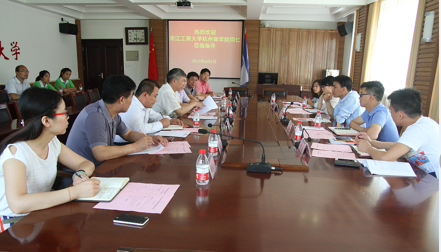 6月5日,浙江工商大学杭州商学院副院长章晓乐一行到新葡的京集团考察交流。学校副院长李崇银、学生工作处处长龙新良、保卫处处长马先进,和部分二级学院辅导员等陪同调研,并就学生管理、辅导员队伍建设、公寓管理、校园安全保卫工作等进行了深入探讨和交流。