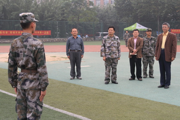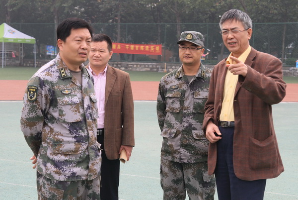 李副院长来到训练操场,视察并慰问承训部队教官和军训学生,热情赞扬了全体承训官兵的认真、奉献精神,充分肯定了同学们高标准、高质量、高水平地完成各项训练任务,他希望广大同学在接下来的军训和学习工作中能够延续军训中的作风与习惯,变得更加成熟、坚毅,勇攀高峰,为振兴中华实现中国梦贡献力量。