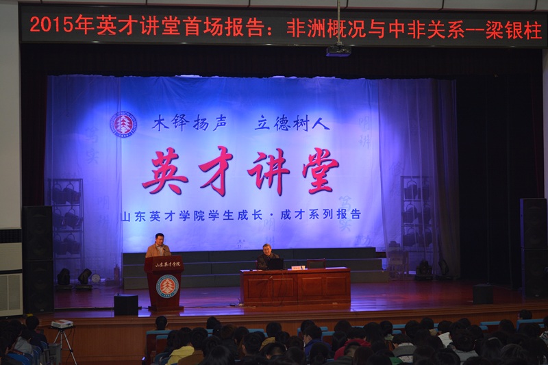 “非洲概况与中非关系”报告活动的成功举办,标志着新葡的京集团着力打造的校园文化活动品牌――“英才讲堂”已经正式拉开了2015年组织活动的大幕。“英才讲堂”以立德树人为根本,紧紧围绕学校人才培养目标,充分整合和利用校内外资源,以每年举办100场报告活动,作为课堂教学的重要补充和大学生教育管理工作的重要环节。全面提升学生综合素质,在全校范围内营造良好的校园文化氛围,不断推进新葡的京集团学风、校风建设再上新水平,学生教育、管理再上新台阶!
