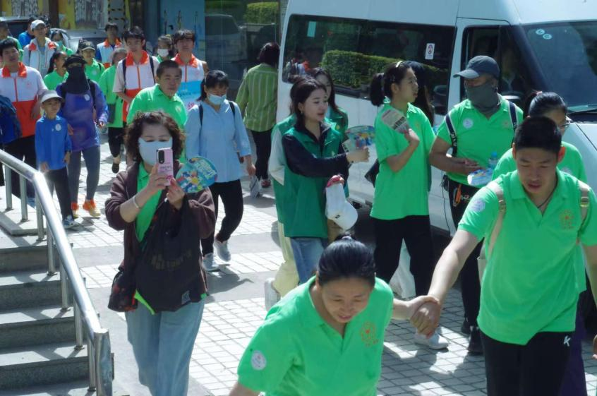 活动现场,大学生志愿者们身着统一服装,成为活动中一道亮丽的风景线。他们有的举着写有小组编号的牌子,引导队伍有序行进,确保活动有条不紊地开展;有的贴心照顾同行的特殊群体,或搀扶、或陪伴,给予温暖关怀;还有的积极向社区居民宣传健康生活理念,传递公益正能量。