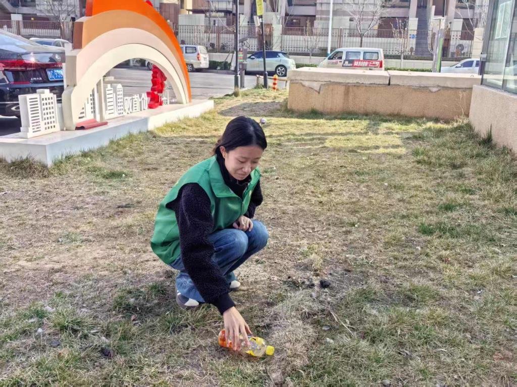 来到在走廊和草地,他们弯腰捡拾散落的水瓶、纸屑,清扫落叶尘土;在社区门口,他们用铲子、喷壶仔细铲除覆盖墙面的小广告,恢复建筑立面整洁。