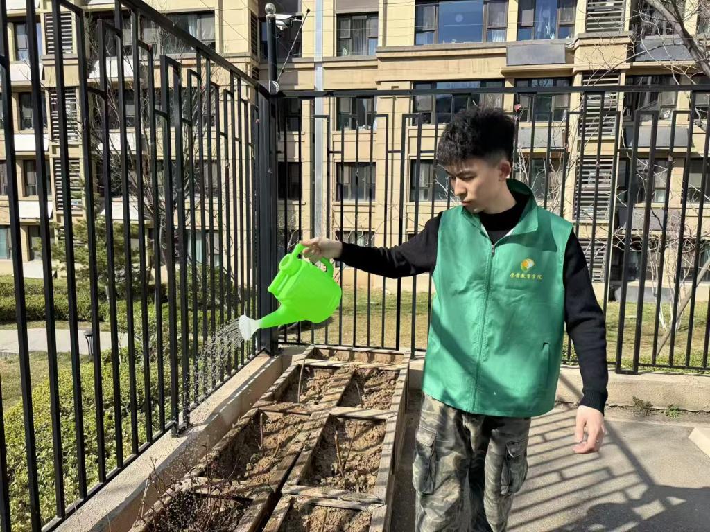 目光转向社区公共区域,学前教育学院的志愿者们手持扫帚、抹布等工具,对走廊进行全面清扫。从墙面除尘到地面垃圾清理,从扶手擦拭到角落清洁,不放过任何一处卫生死角,使社区公共空间面貌焕然一新。在社区菜地里,大学生们提着浇水工具穿梭其间,为蔬菜幼苗细心浇灌。他们根据不同作物生长需求控制浇水量,以实际行动助力社区"小菜园"建设,让这片承载着居民期待的土地充满生机。