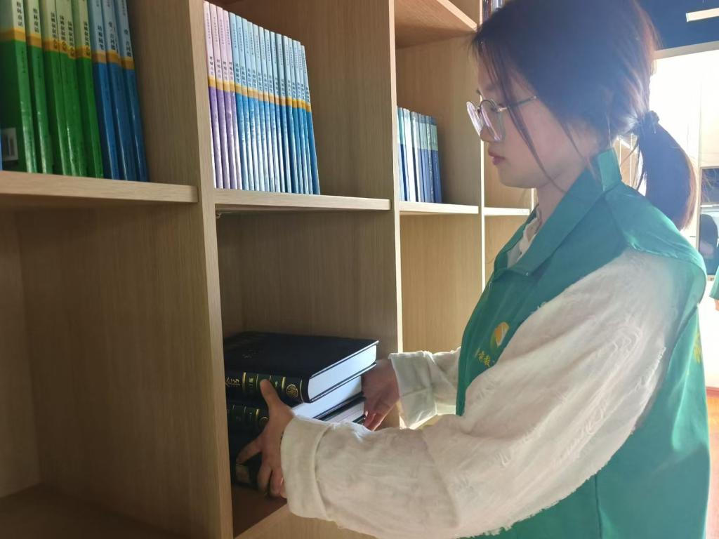 在社区图书馆,志愿者们化身"图书管理员"与"环境美化师"。他们严格按照图书分类标准,对书架上的书籍进行系统整理,规范图书标签,重新编排书籍位置,使原本杂乱的书架变得整齐有序,极大提升了居民借阅的便利性。