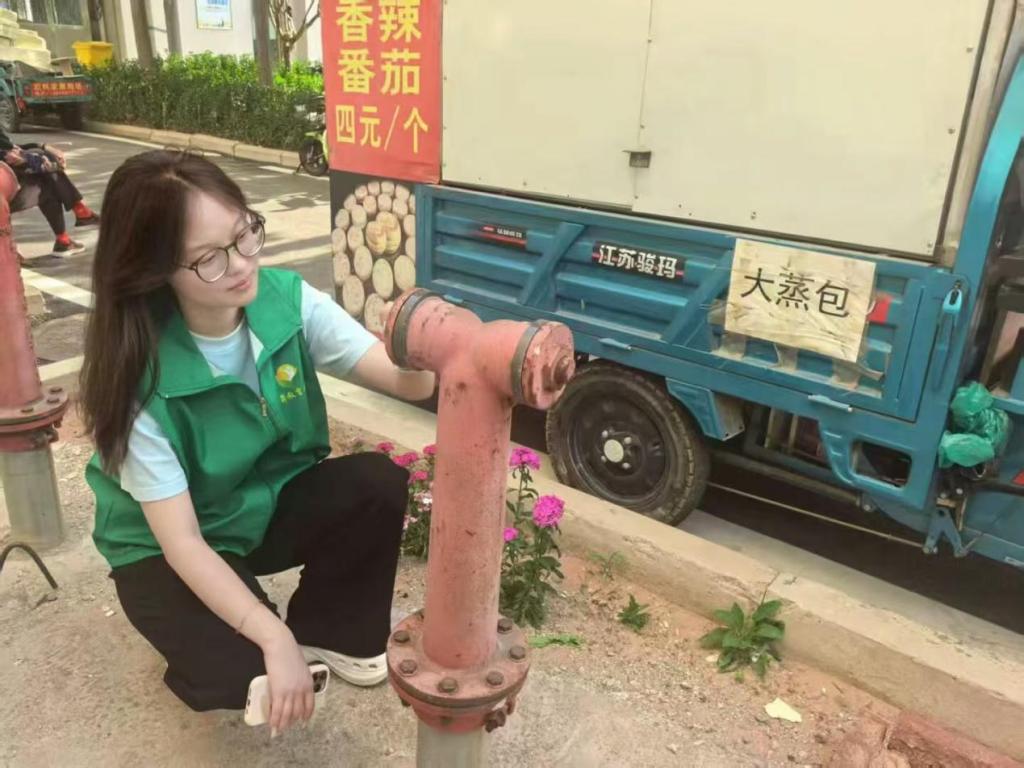 图为实践团成员石宴如在检查安全设施