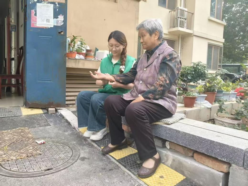 图为实践团成员于瑞欣在为社区老人义诊