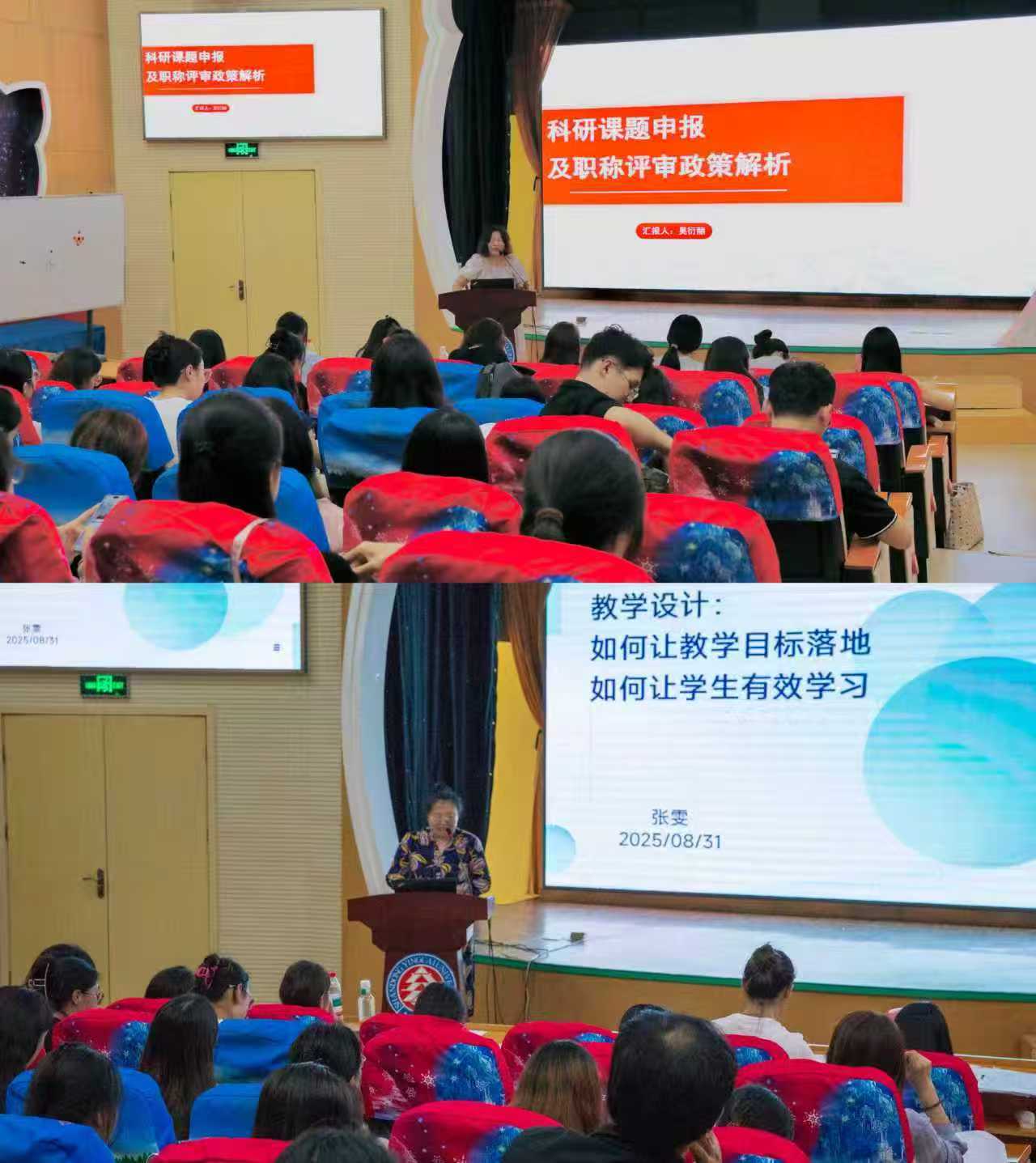 吴衍丽主任就科研课题申报及职称评审政策进行了详细解析,对相关要求及注意事项一一阐明,为新教师们的科研之路和晋升之路指明了方向。张雯老师则通过生动的课堂互动带领新老师们走进教学设计,引导新教师结合自身教学风格,创新教学设计、建设优质课、不断提升教学效果和水平。
