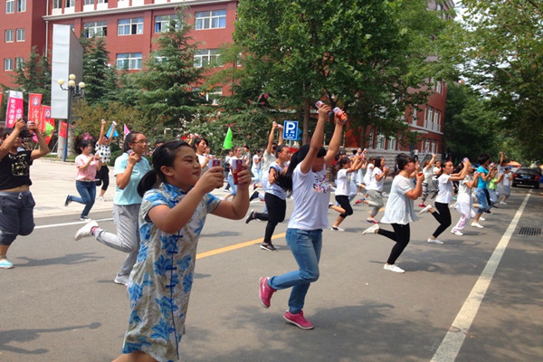 为丰富大一新生的校园文化生活,发扬学前教育学院特色课间操的优良传统。2014年8月23日,由学前教育学院文艺部组织的2014届大一新生课间操学习活动在腾飞广场正式拉开了序幕。