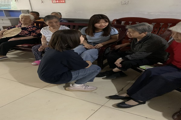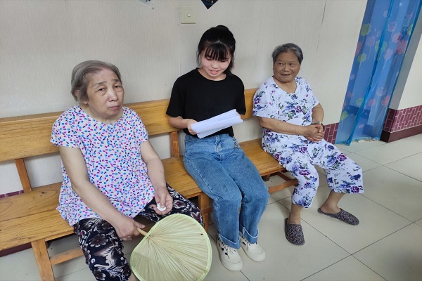 与老人们聊天,互相诉说她们各自的故事,带给老人们欢乐与开心