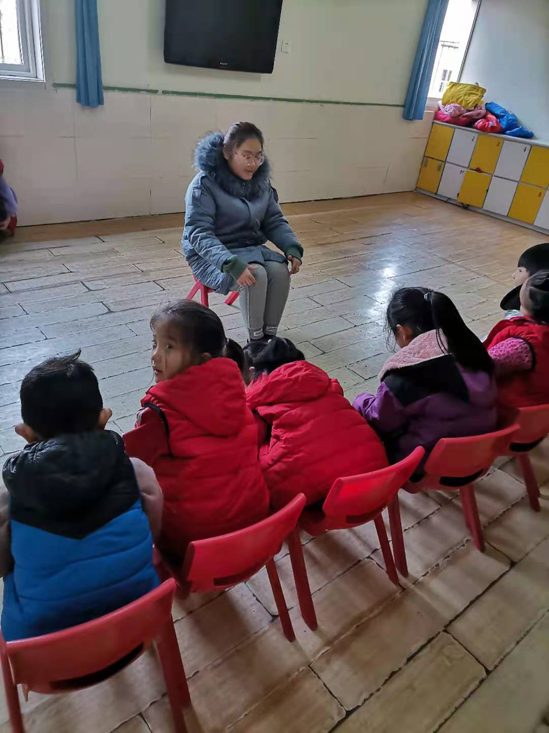 她在园长的带领下很快熟悉了幼儿园的环境,然后她去到了自己将要工作的大班教室。在主班老师的介绍下,她很快记住了孩子们的名字。面对孩子们充满好奇的眼神,她向孩子们介绍了自己。