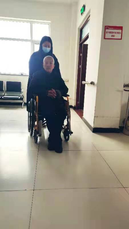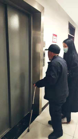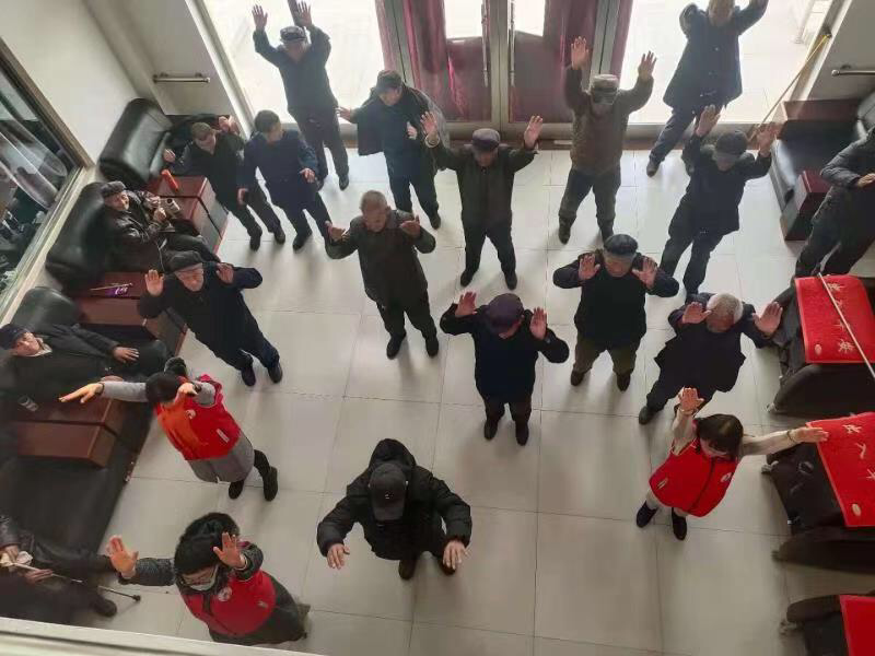我们带领着个别腿脚不方便的老人一起去做活动。