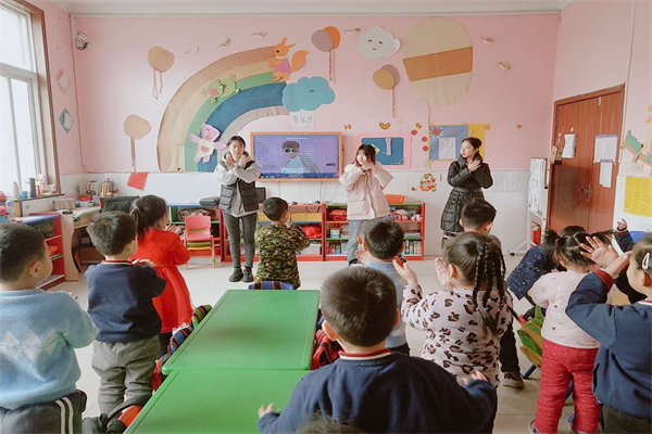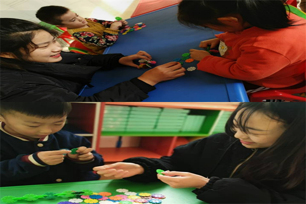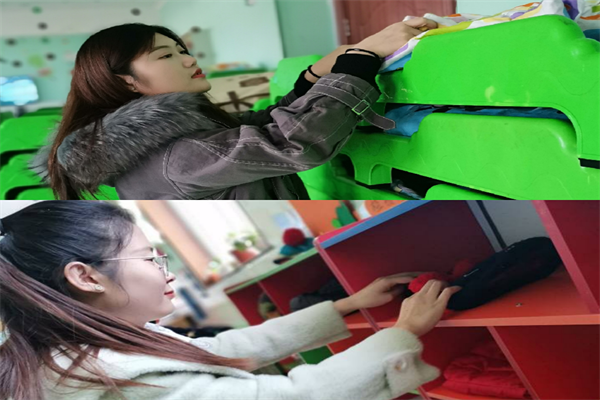 进入幼儿园后,幼儿园老师把实践者们分为三组,一组进入小三班,为班级里的小朋友们收拾床铺、桌椅和橱柜;另一组走进小四班,和小朋友们一起玩积木、画卡片;还有一组跟着幼儿园老师一起教小朋友们做手指操,唱歌跳舞。在见习期间,各位同学积极主动,既主动要求观摩和组织幼儿园各领域的教学活动,也积极地参与到幼儿园的各项保育工作中,志愿者们希望用自己的微薄力量,放飞孩子们的梦想。