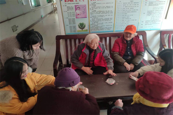 2020年1月6日早上“英才小分队”实践团的八名志愿者采购完老人们可以吃的水果、糕点后热情洋溢地走进了祥和苑养老院,开展了一期志愿服务活动,给正值寒冬时的老年公寓增添了一份温馨。志愿者们到每楼层的各个房间,陪老人们拉拉家常、讲讲养生小知识,还帮助老人整理内务,打扫卫生,给老人们捶背按摩。老人们亲切问候了志愿者们的家都在哪儿,其中一位志愿者家离得特别远,有位奶奶特别心疼这位志愿者离家那么远,说一定很想家并安慰了志愿者,奶奶还让志愿者们好好照顾身体。有一位九十多岁的高龄奶奶,跟志愿者们讲起她的儿子,言语中满是爱。带着老人们对志愿者们热情服务的赞扬于2020年1月12日,结束了此次志愿服务活动。最后,志愿者们说,在养老院里,她们这几天有感动,有喜悦,有紧张,但还是要感谢这次的与老人们的相遇,这对她们来说是一次难以忘怀的经历,不仅给老人们送去了温暖,也使自己从中受益良多。很开心可以参加本次志愿活动,如果还有下一次机会,她们绝不会错过。