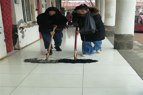 下午一点左右,我团队参加该活动的8名同学在车站集合完毕。我们满怀激动,前往敬老院进行公益劳动。进入敬老院,在领导阿姨的安排下,有的同学对餐厅、院落、窗户等进行了认真、彻底地打扫;有的同学与老人们亲切、热情地聊天,给老人们送上一份温馨和幸福;还有的同学搀扶老人下床走路,个个都很认真的学着、干着。一些老人对我们赞不绝口。虽然辛苦,但是我们感到无比光荣。