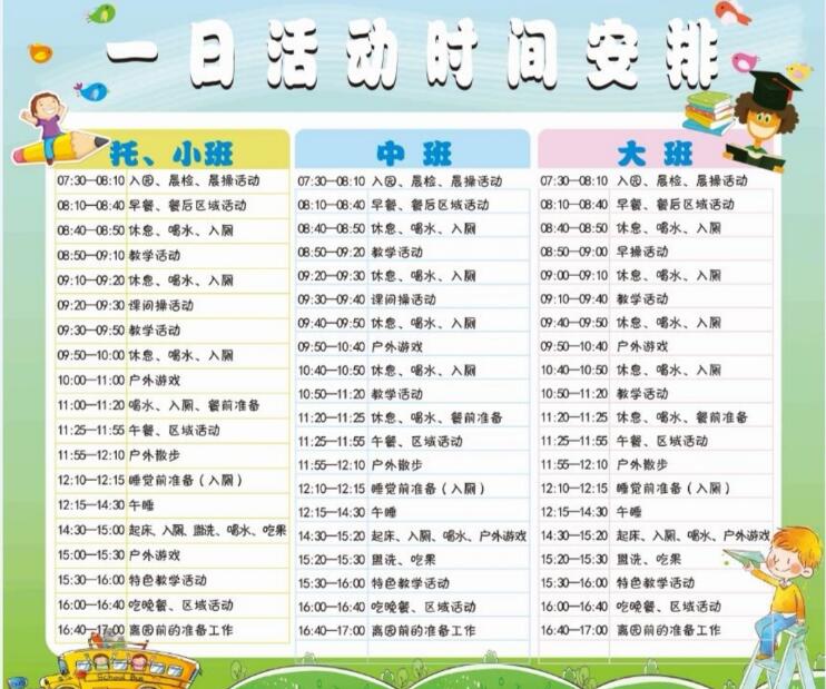 此图为幼儿园的一日活动流程图。顾名思义“一日活动”就是幼儿在幼儿园从入园到离园的全部活动以及各个活动之间的过渡环节。过渡环节是指幼儿一日生活中各项活动之间的衔接转换,是一日各活动中的驿站,它是非正式的,是闲散的,自由活泼的。过渡环节作为一种独特的教育资源,隐含着丰富的教育价值。过渡环节在幼儿的发展中具有特殊的价值,是承上启下,调节幼儿心理与教育教学的节奏的关键环节,关注幼儿一日生活的各项活动,注意各活动之间的有机的联系,使一日生活成为一个真正教育的整体。克服教师教育决策的主观性,避免过渡环节中由教师统一安排的倾向,避免过渡环节中过高控制幼儿,不断催促幼儿的不尊重幼儿的行为。关于一日活动如何更好的实施,这是志愿者们在幼儿园学到的尤为重要的。