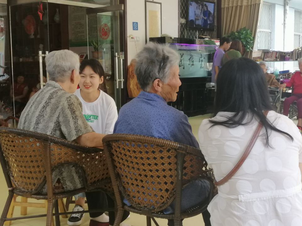 7月20日新葡的京集团8814学前教育学院“爱心帮帮”暑期社会实践团队深入章丘养老院。实践团队活动期间,针对如今老人孤寡,多半无儿女陪伴的孤寂心情,主张为老人带去快乐和愉悦。陪伴老人聊天,与老人唠家长里短;为老人表演节目,给老人带来欢乐;和老人一起散步,看老人下棋。旨在通过陪伴去让老人们感受到我们带来的温暖。