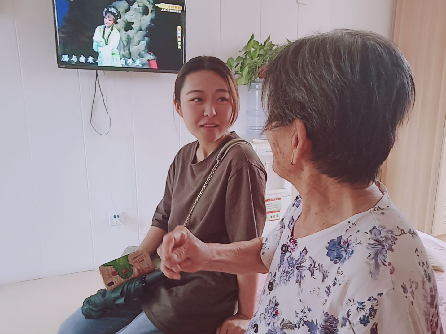 同学们和敬老院的奶奶们亲切聊天