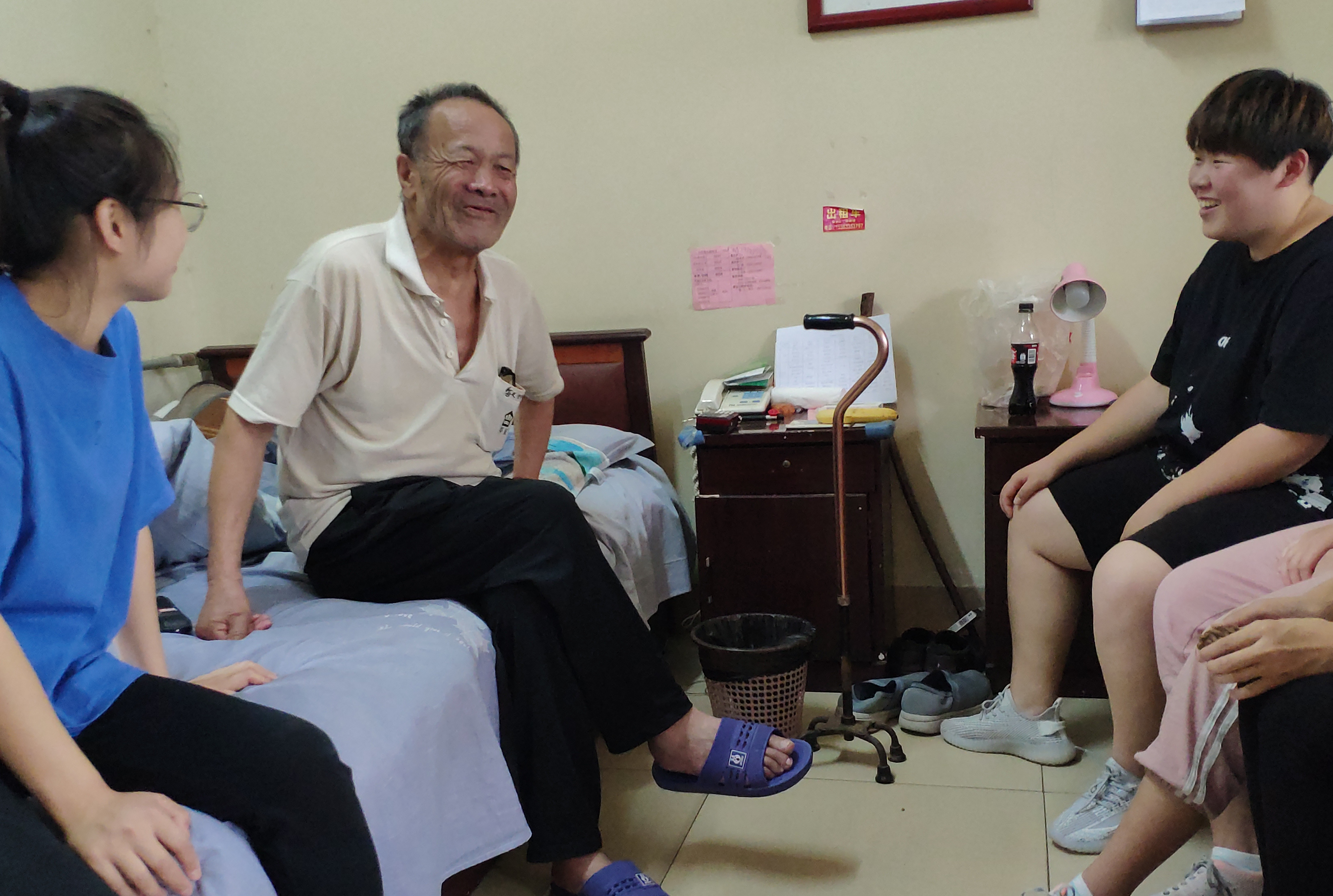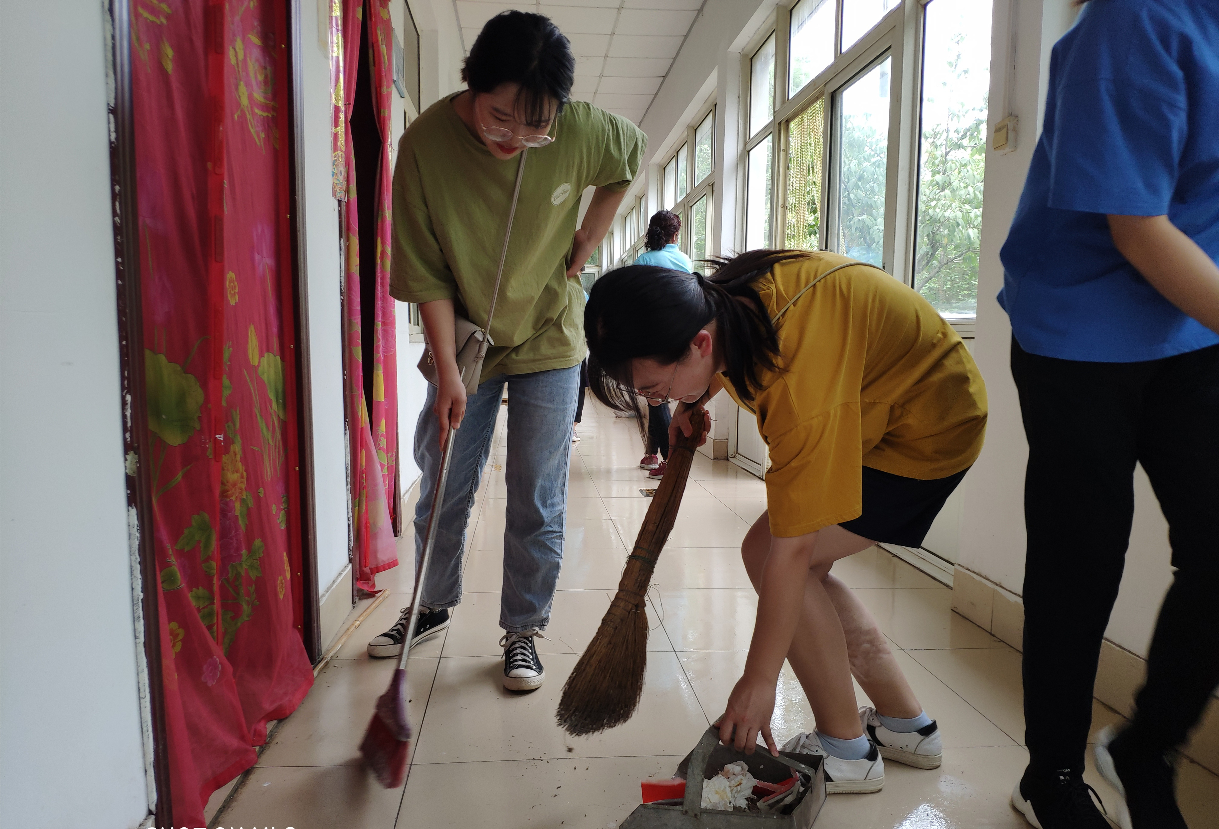 进入日月潭养老中心,志愿者与院长简单交流后便开始了实践活动。考虑到老人的东西不多,打扫难度不大。志愿者决定争分夺秒为老人做一些力所能及有意义的事情,尽快给老人营造整洁舒适的环境,他们分工明确,两人负责一间屋子,志愿者边打扫房间边和老人聊天,听老人讲自己的过去,与老人分享自己的校园生活,展开了新一代和老一代的心灵沟通。