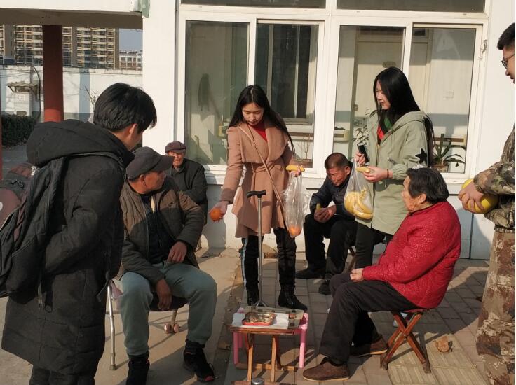几经周转,同学们来到了济南市章丘区圣井街道圣井中心养老院,一到达,在负责人的安排后,同学们就积极投入到关爱老人的活动当中。