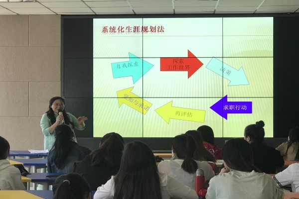 讲座开始,闫园长先是跟同学们做了互动,然后闫园长就人生三张图展开对学生们的职业生涯规划作引领和启示。闫园长向学生讲述了社会职业的特点、做好职业生涯规划的重要性,通过自我认知和有趣的岛屿测试帮助同学们寻找适合自己的职业方向,还通过一系列的活动帮助学生提高了自信心,培养了学生积极乐观的心态。与此同时,闫园长还给学生分析了性格、心理气质类型等对职业的选择的影响,还教学生们通过360度评估,来提升自己!