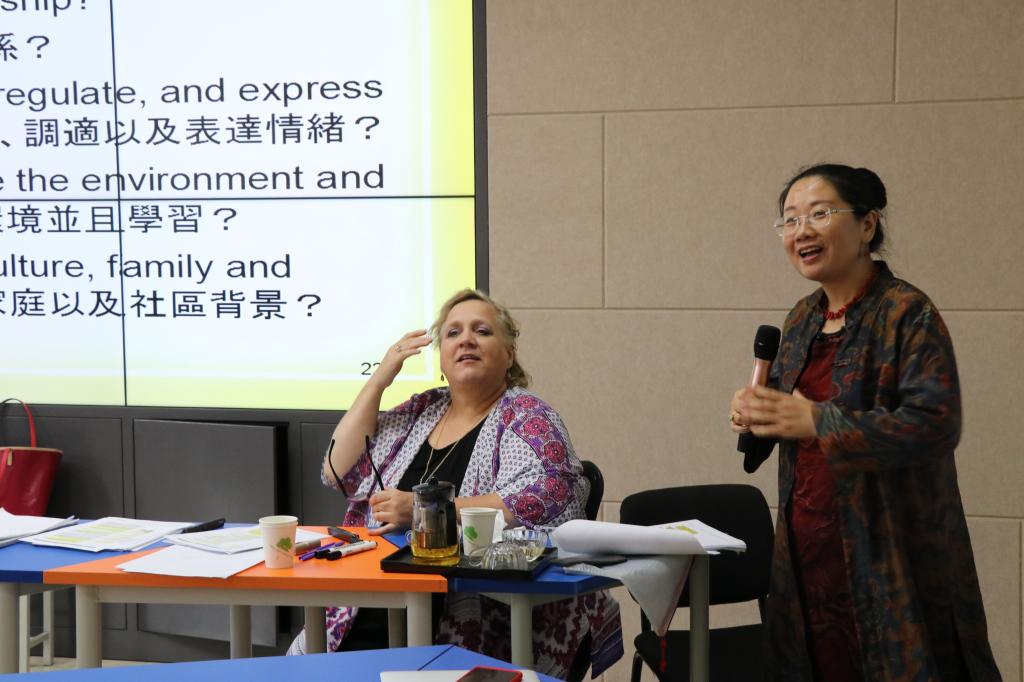 此次工作坊我们邀请到了两位专家,一位是来自美国的Sara J. Beach(萨拉.比奇),Sara老师是高级Class培训师,福克斯谷儿童早教协会创始人,从事早期教育工作30余年。另一位是澳门大学学前教育和儿童发展中心主任,博士生导师胡碧颖教授。