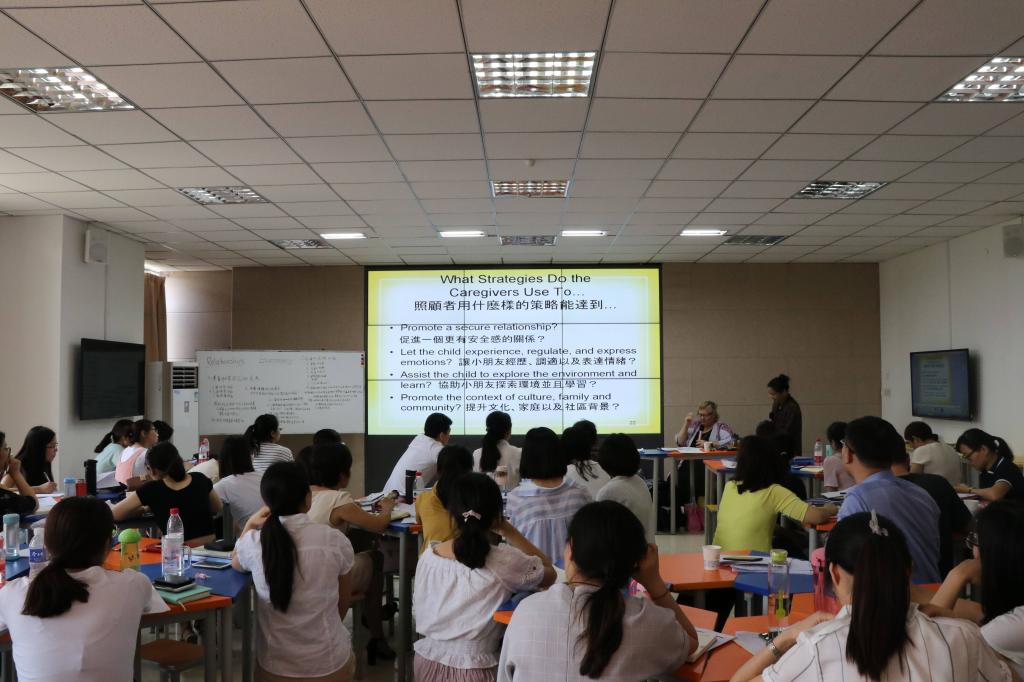 两位老师将用为期三天的时间深入给大家讲解亲密师幼关系的重要性和构建路径及环境对婴幼儿社会性发展的作用等。工作坊采用了讲座加分组讨论和案例分享的形式,两位老师在轻松愉悦的氛围中带领大家共同走进了婴幼儿思维与情绪发展的世界。