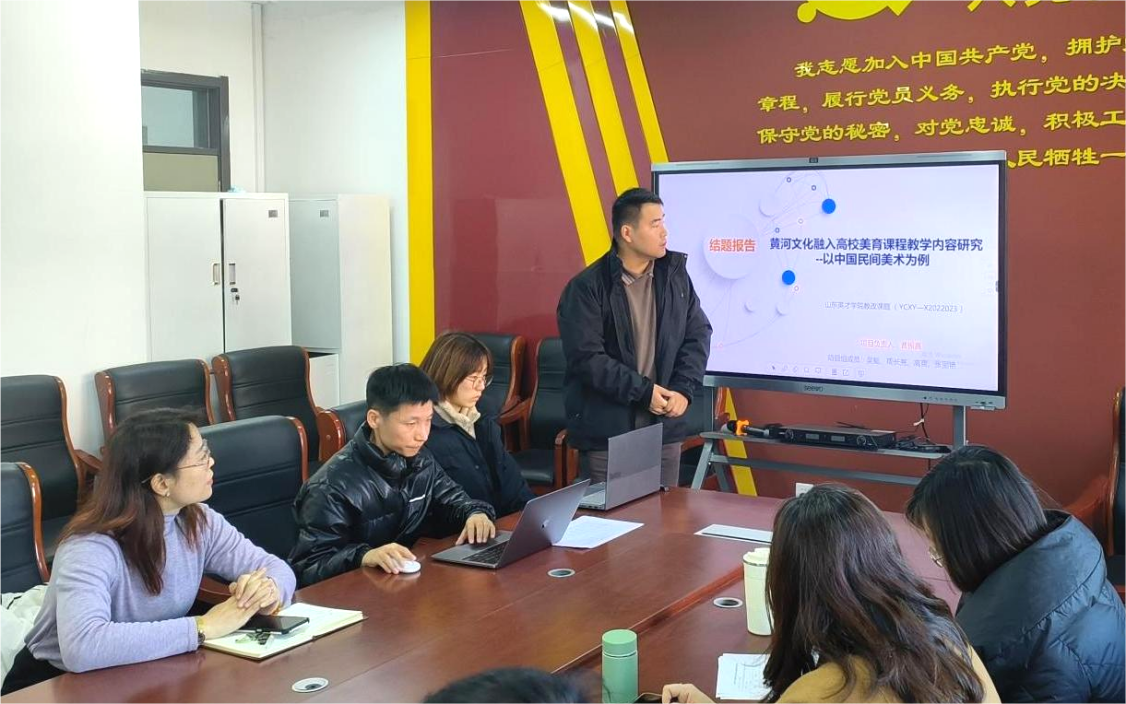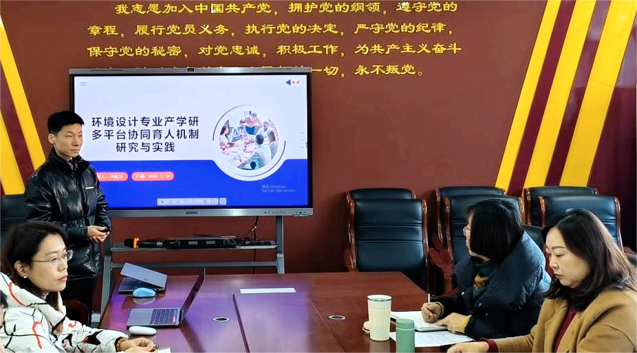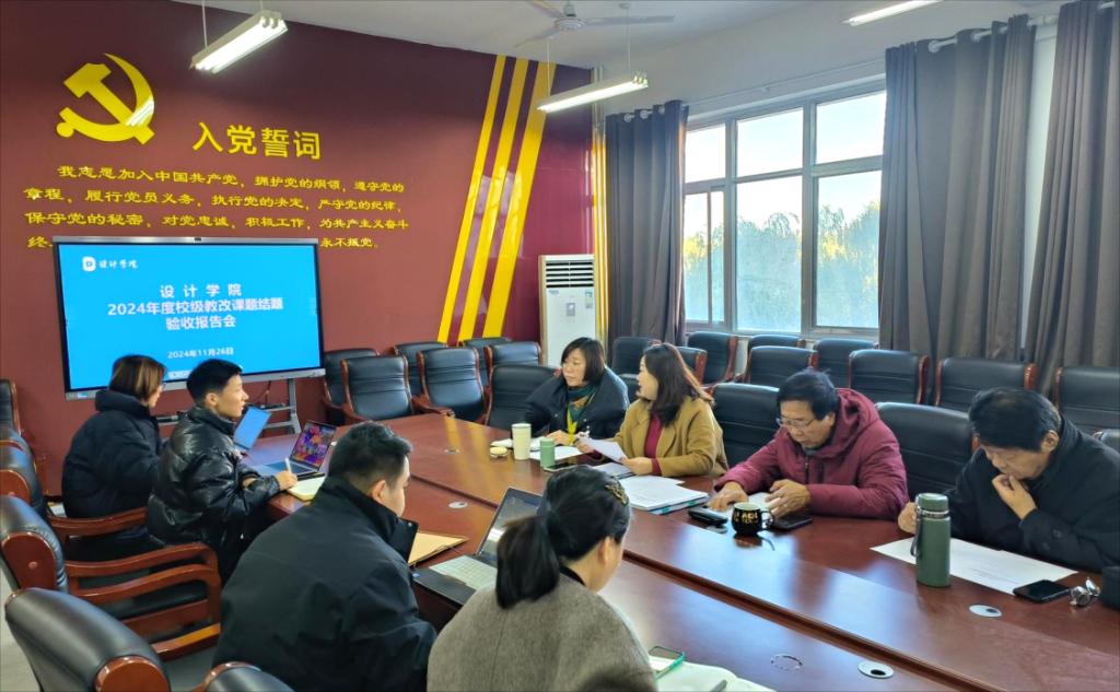 为全面总结并展示设计学院在教育教学改革方面所取得的成果,推动教学改革工作的持续深化与发展,2024年11月26日上午9点,设计学院在教学楼308举办了2024年度校级教学改革研究课题结题验收报告会。出席报告会的领导有设计学院院长周长积,特聘教授王智,教学副院长郝莹,实训中心主任荣鹏鹏以及骨干教师郭莹莹、陈丽红。