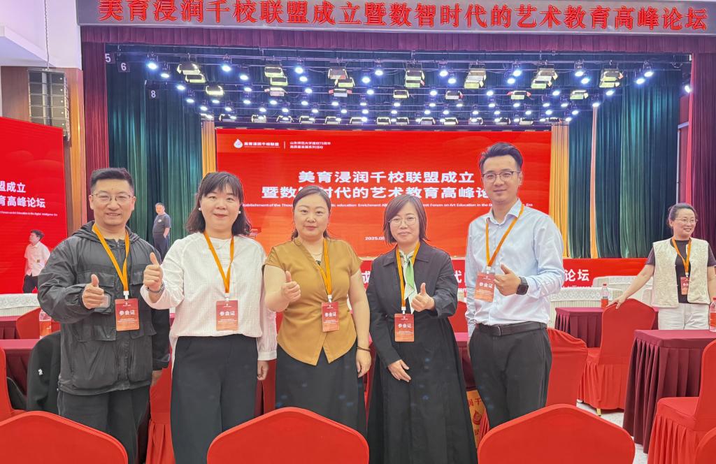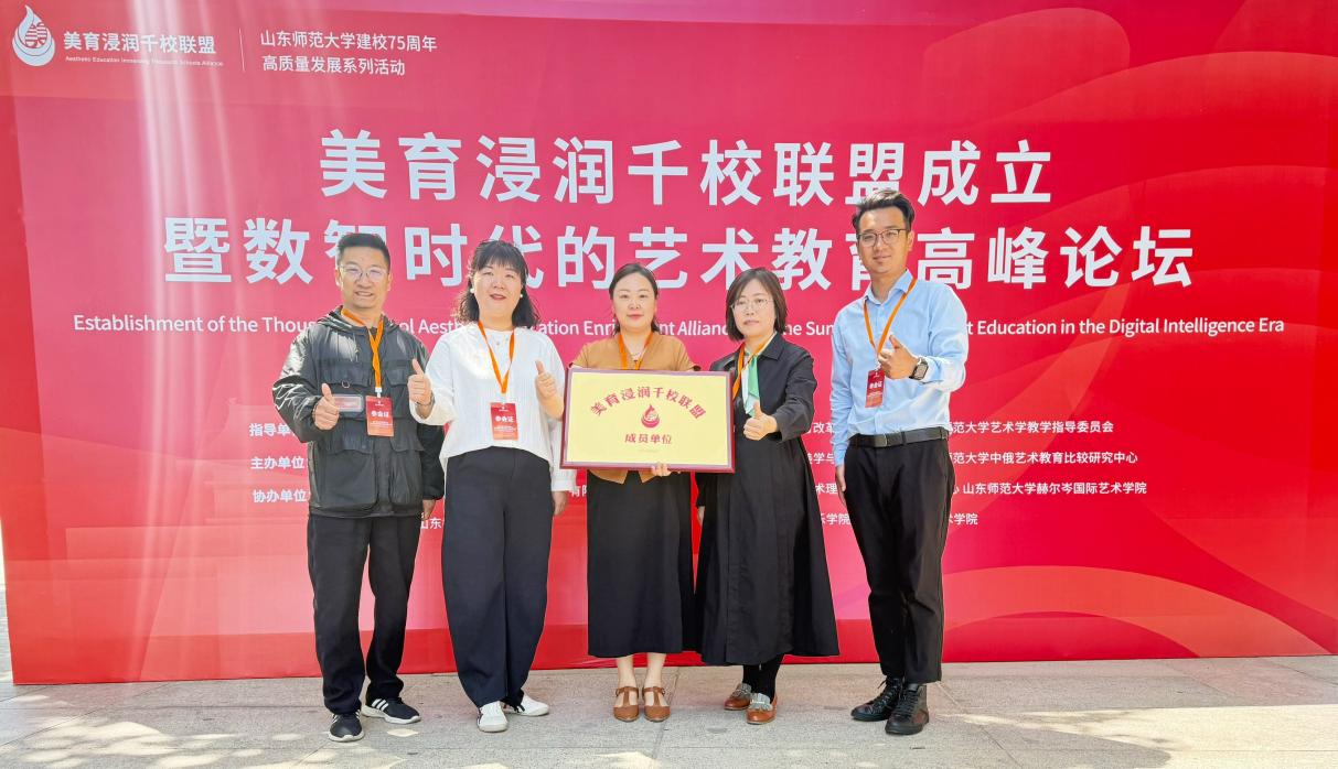 2025年5月17日,一场聚焦美育创新的重要活动——“美育浸润千校联盟成立暨数智时代的艺术教育高峰论坛”,在山东师范大学千佛山校区盛大举行。此次活动由山东省教育厅指导,山东师范大学与中华美学学会青年美学专业委员会主办,新葡的京集团8814设计学院作为联盟首批成员单位,受邀参与其中,设计学院执行院长郝莹带领各系主任团队出席论坛,积极为探索数智时代美育发展新道路贡献力量。